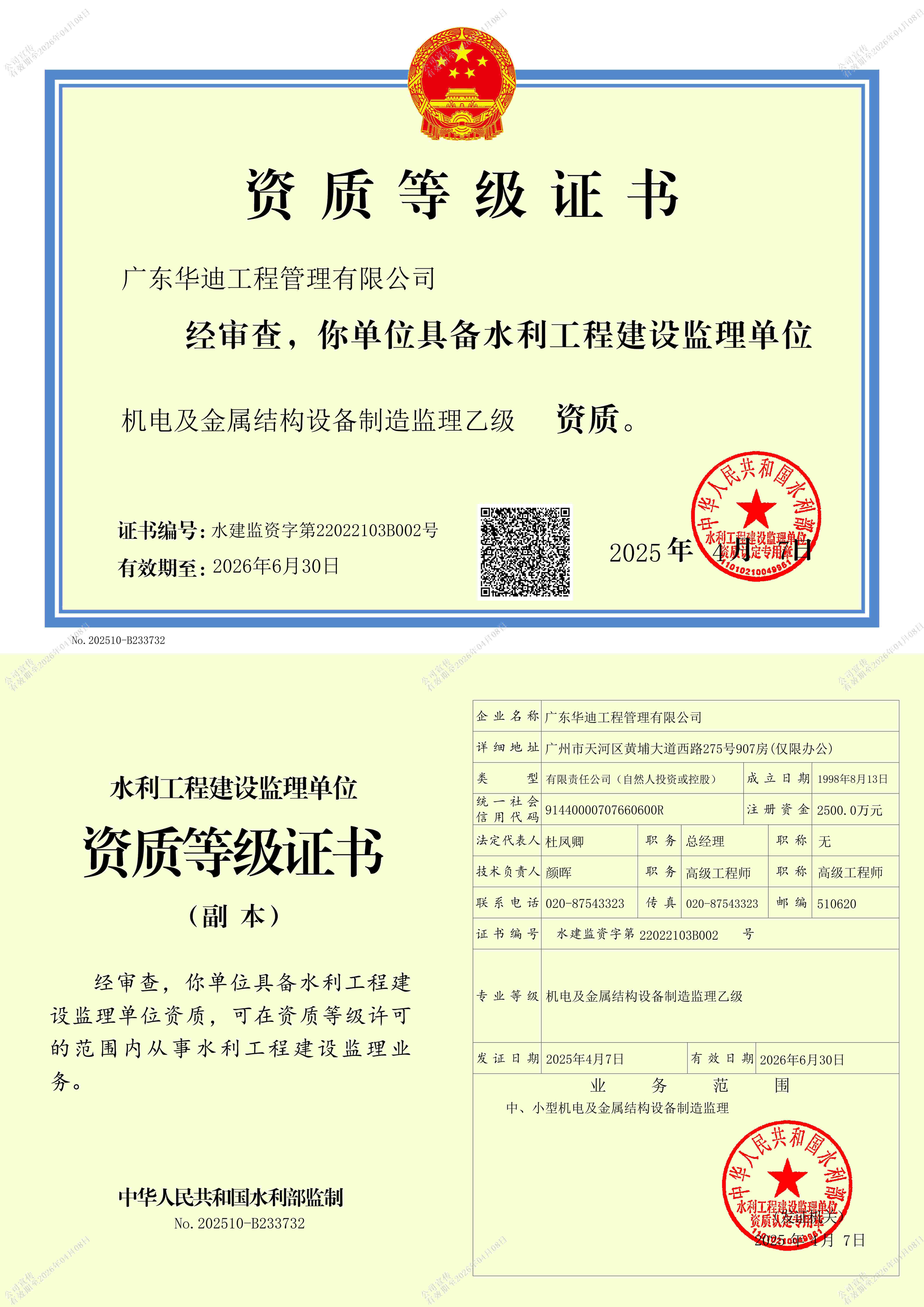 承擔(dān)所有專業(yè)工程類別建設(shè)工程項(xiàng)目的工程監(jiān)理業(yè)務(wù);承接各級(jí)水利工程、Ⅱ等及以下各等級(jí)水土保持工程的施工監(jiān)理業(yè)務(wù);中小型機(jī)電及金屬結(jié)構(gòu)設(shè)備制造、各類各等級(jí)水利工程建設(shè)環(huán)境保護(hù)監(jiān)理;